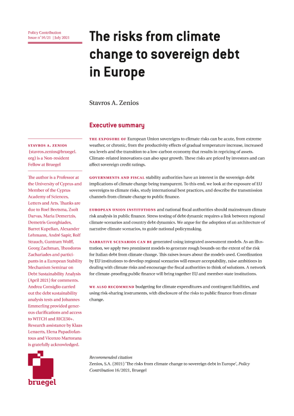 【布鲁盖尔研究所】【202107】气候变化对欧洲主权债务的风险-24页