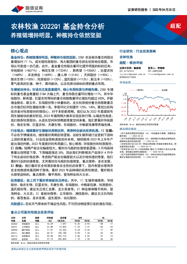 【国信证券】【20220425】农林牧渔行业2022Q1基金持仓分析:养殖链增持明显,种植持仓依然坚挺-27页