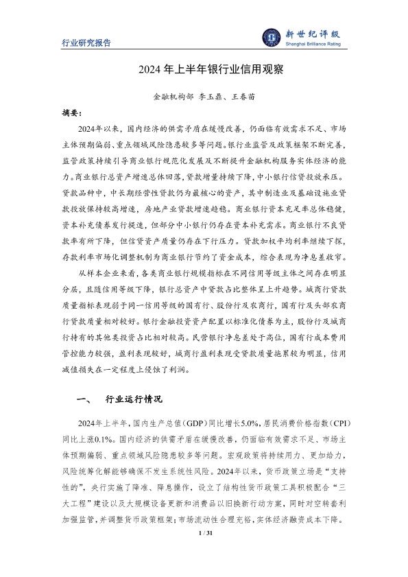 【新世纪评级】【20240926】2024年上半年银行业信用观察报告-31页