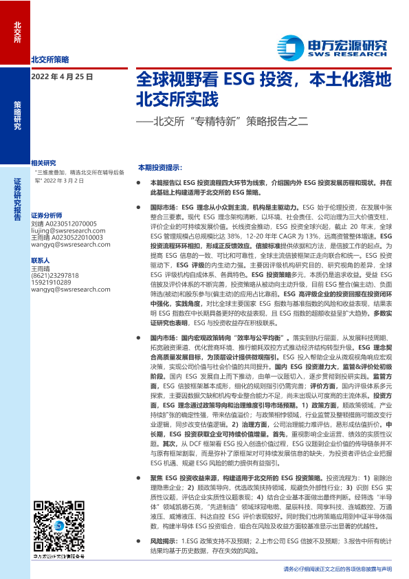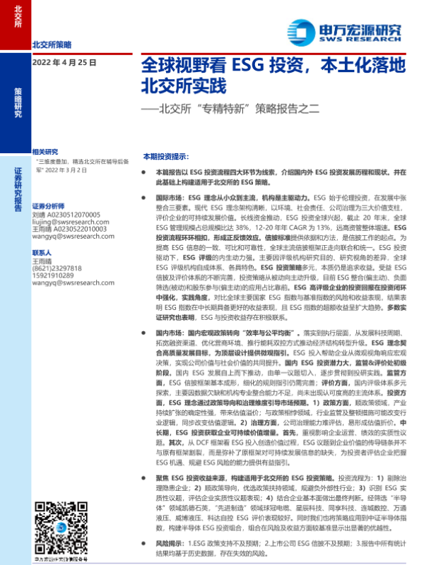 【申万宏源】【20220425】北交所“专精特新”策略报告之二:全球视野看ESG投资,本土化落地北交所实践-37页