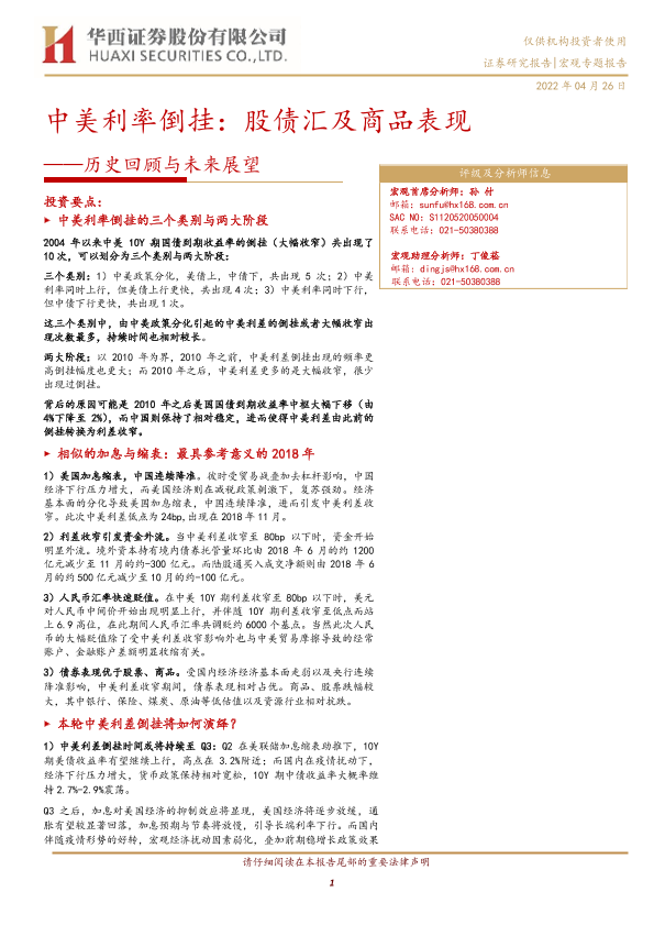 【华西证券】【20220426】历史回顾与未来展望:中美利率倒挂,股债汇及商品表现-16页