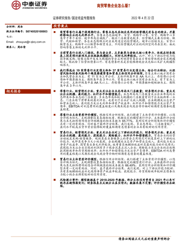 【中泰证券】【20220422】固定收益专题报告:商贸零售企业怎么看?-28页