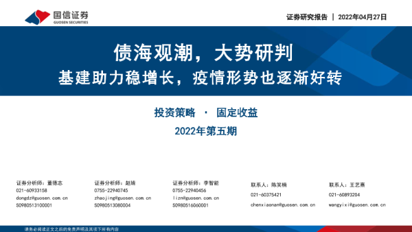 【国信证券】【20220427】固定收益2022年第五期:债海观潮,大势研判,基建助力稳增长,疫情形势也逐渐好转-53页
