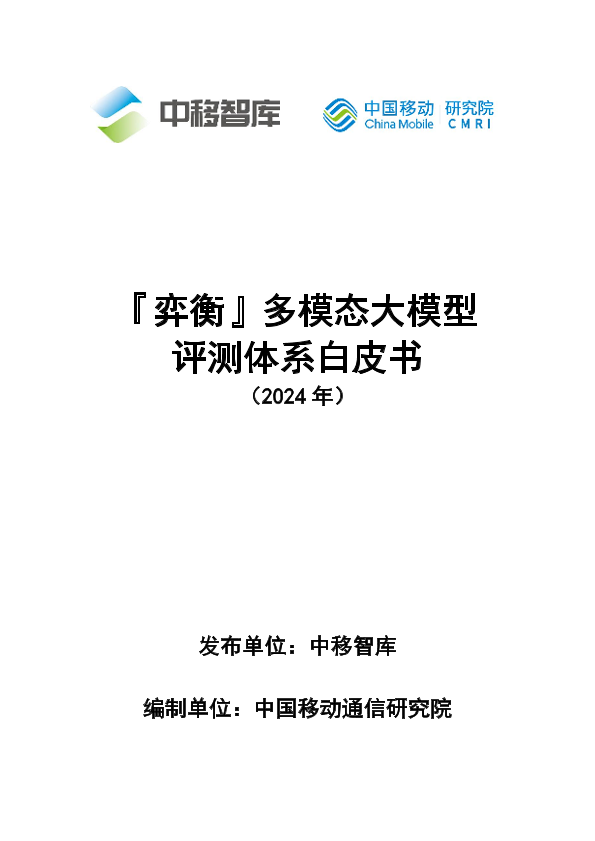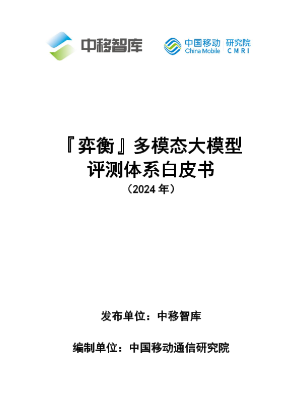 【中国移动通信研究院】【20241012】弈衡:多模态大模型评测体系白皮书-29页