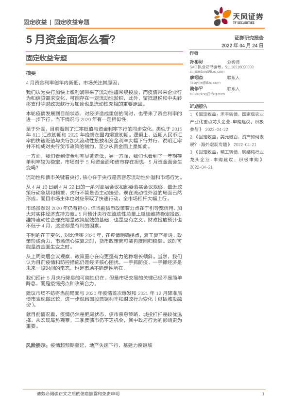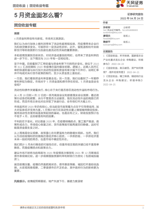 【天风证券】【20220424】固定收益专题:5月资金面怎么看?-38页