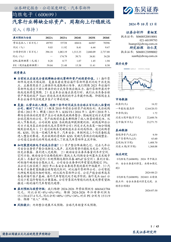 【东吴证券】【20241013】汽零行业稀缺全球资产,周期向上行稳致远-43页