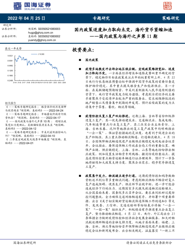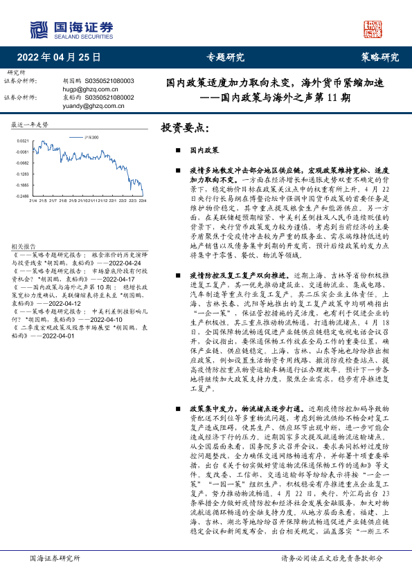 【国海证券】【20220425】国内政策与海外之声第11期:国内政策适度加力取向未变,海外货币紧缩加速-28页