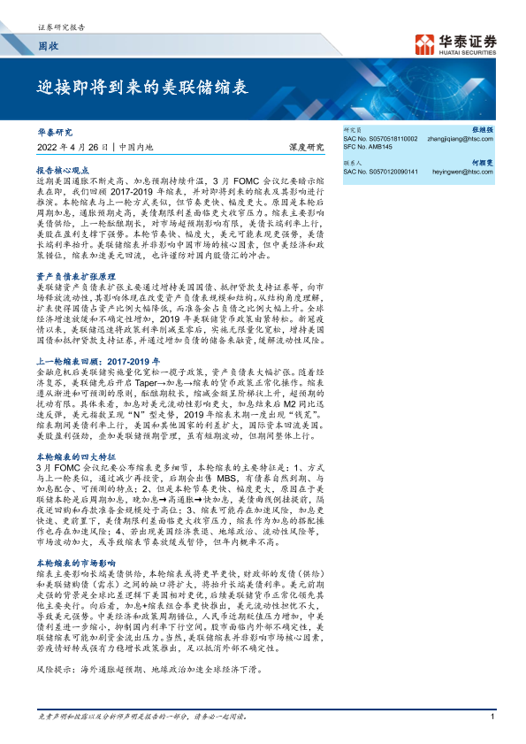 【华泰证券】【20220426】固收深度研究:迎接即将到来的美联储缩表-20页