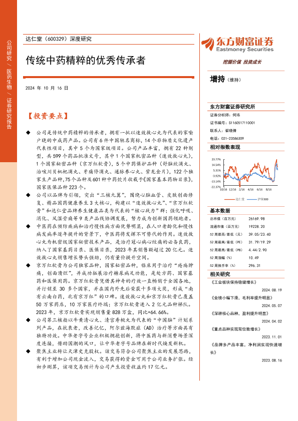 【东方财富证券】【20241016】2024-10-20-深度研究:传统中药精粹的优秀传承者-27页