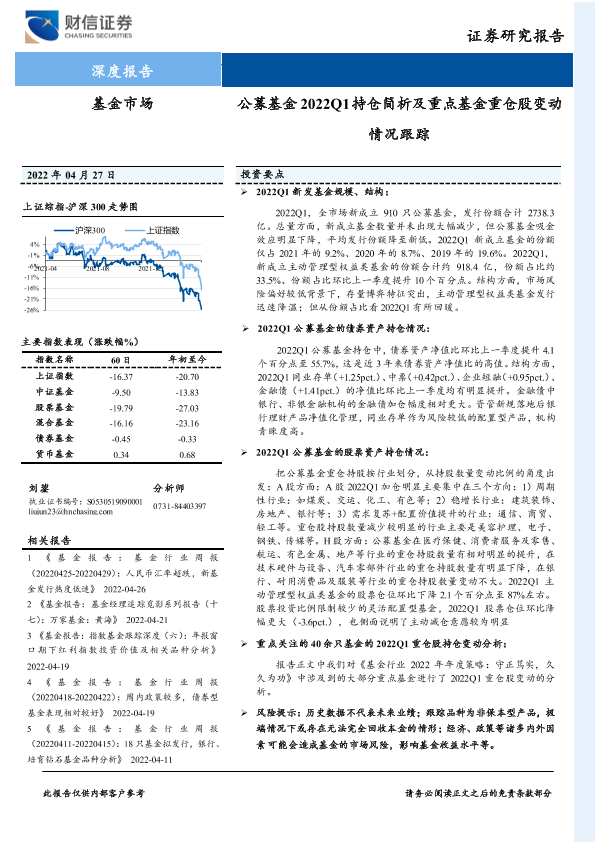 【财信证券】【20220427】基金市场:公募基金2022Q1持仓简析及重点基金重仓股变动情况跟踪-16页