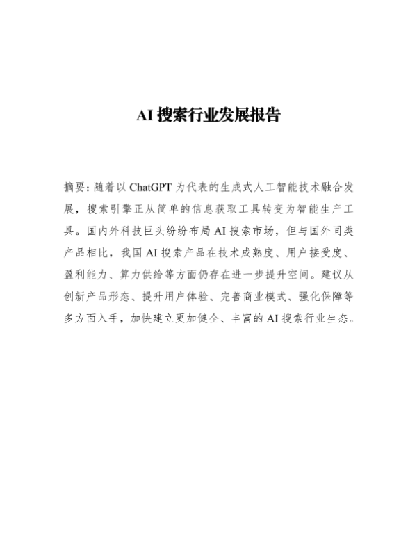 AI搜索 搜索引擎发展 生成式人工智能 科技巨头布局 行业生态
