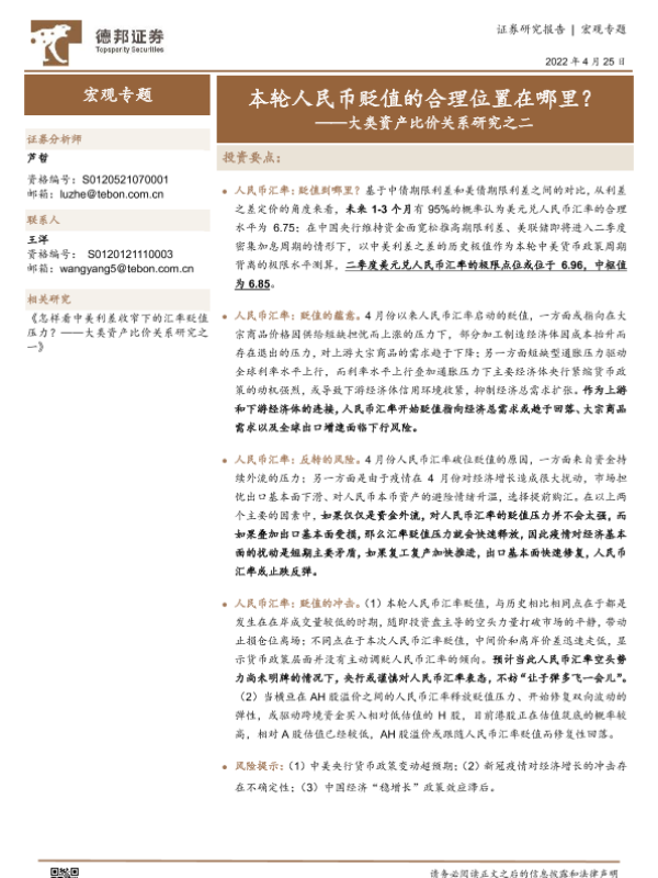 【德邦证券】【20220425】大类资产比价关系研究之二:本轮人民币贬值的合理位置在哪里?-16页