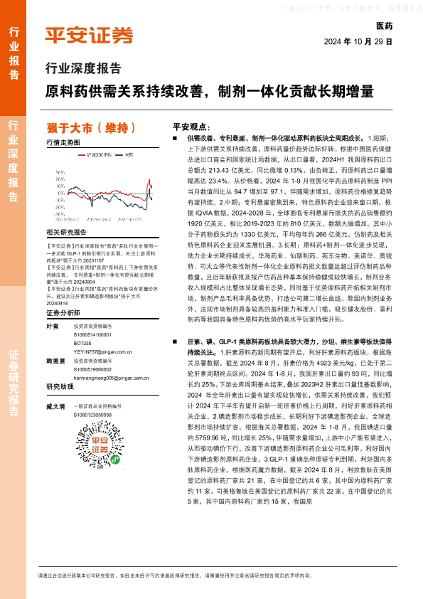 【平安证券】【20241029】2024-10-29-平安证券-医药行业深度报告:原料药供需关系持续改善,制剂一体化贡献长期增量-16页
