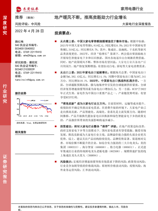 【东莞证券】【20220428】大家电行业深度报告:地产暖风不断,推高卖新助力行业增长-30页