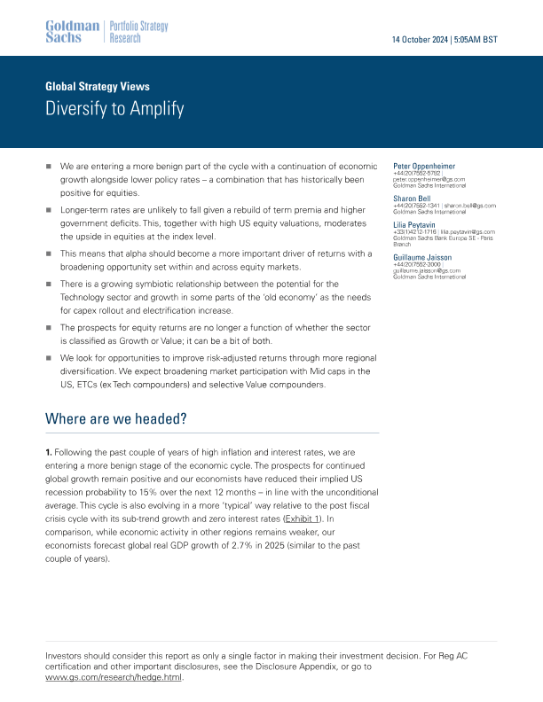 【Goldman Sachs】【20241014】2024年全球策略前瞻多样化投资策略分析报告英文版-19页