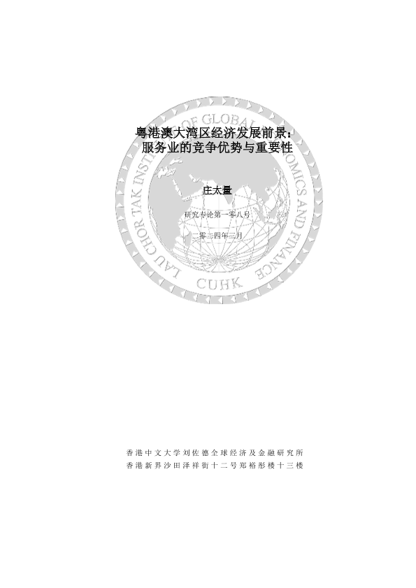 【香港中文大学刘佐德全球经济及金融研究所】【202403】2024粤港澳大湾区经济发展前景:服务业的竞争优势与重要性-71页