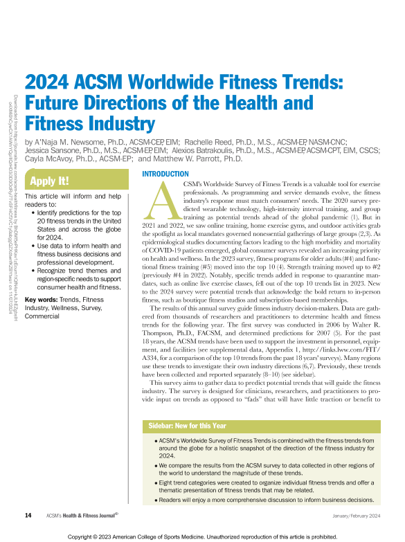 【美国运动医学会ACSM】【2024】2024年全球健身趋势健康和健身行业的未来方向报告-13页