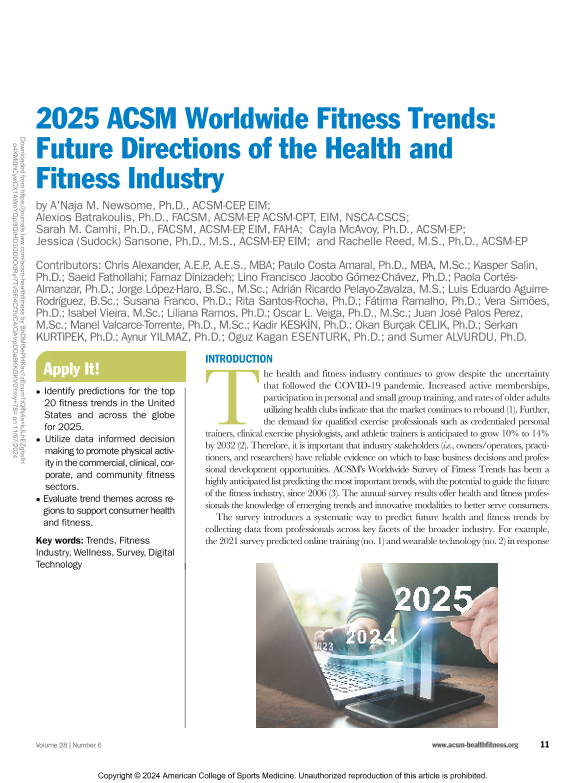 【美国运动医学会(ACSM)】【2024】2025年全球健身趋势:健康和健身行业的未来方向-15页