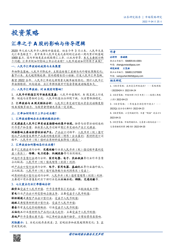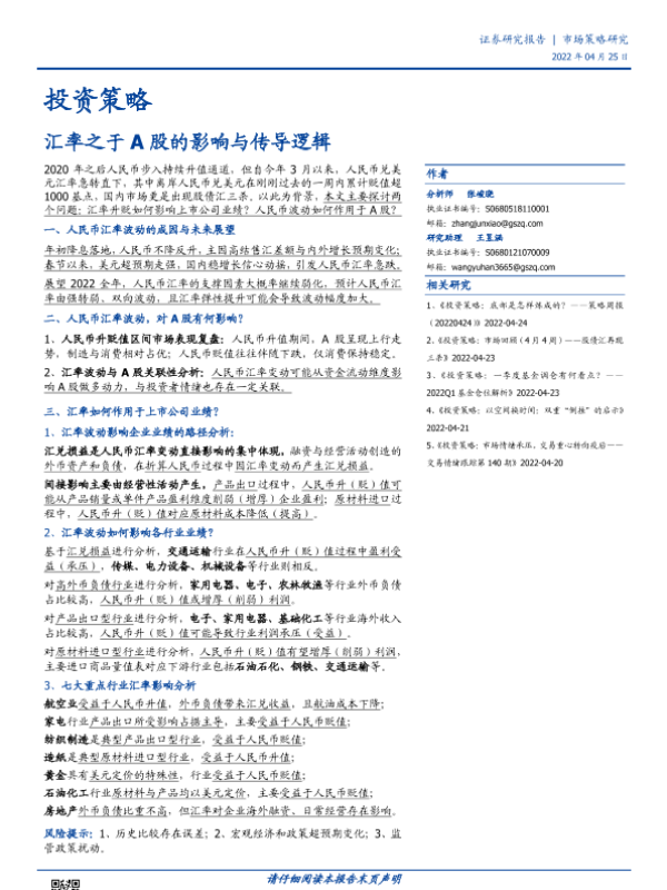 【国盛证券】【20220425】投资策略:汇率之于A股的影响与传导逻辑-18页