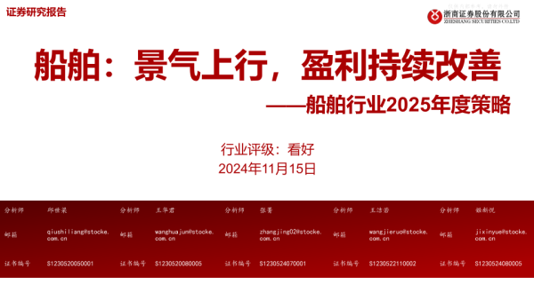 【浙商证券】【20241115】船舶行业2025年度策略:船舶,景气上行,盈利持续改善-37页