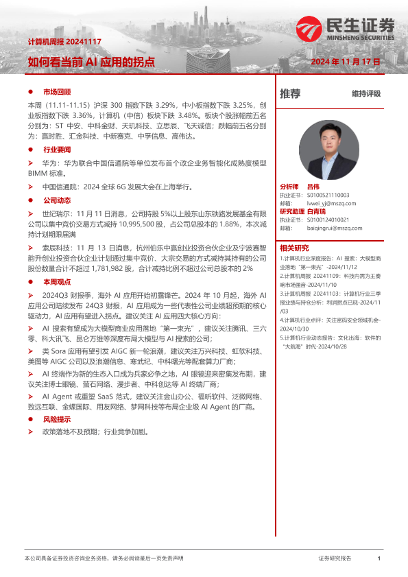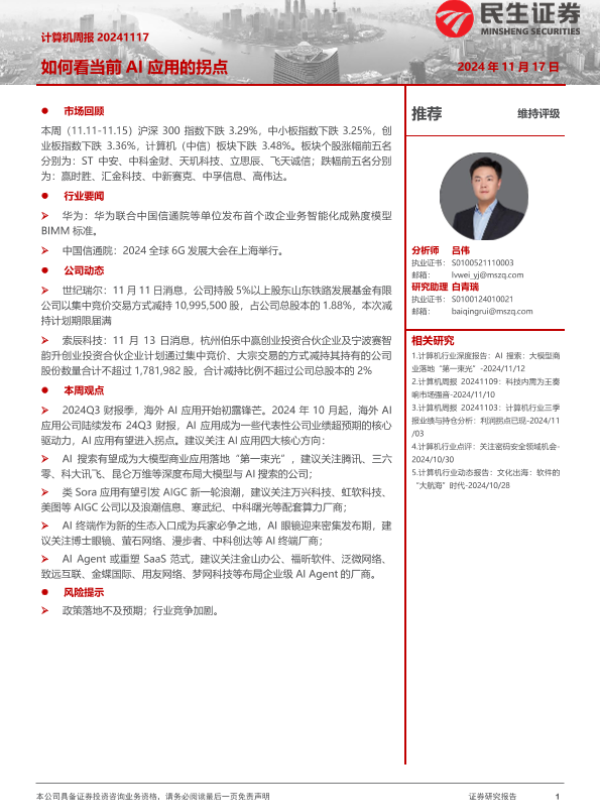 商业模式 技术趋势 投资建议 证券研究 AI应用