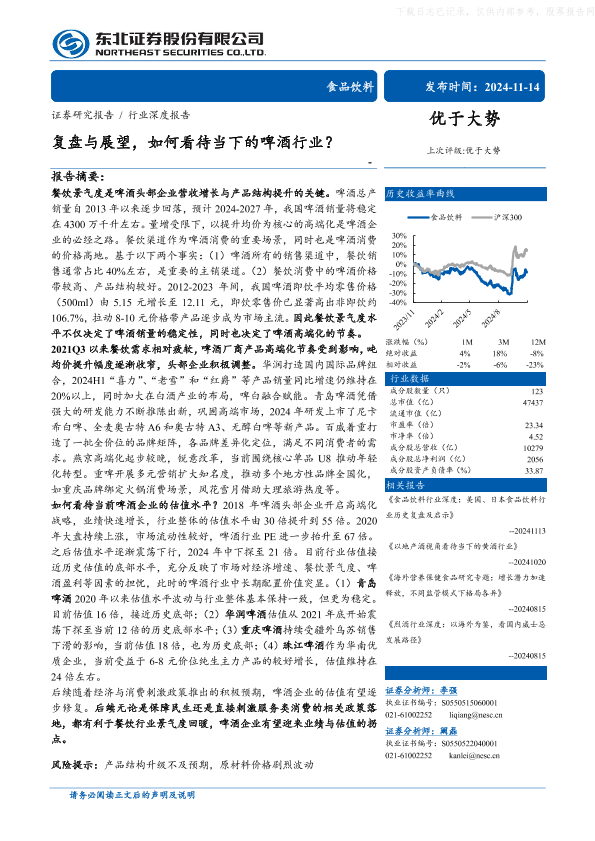 【东北证券】【20241114】2024-11-17-食品饮料行业:复盘与展望,如何看待当下的啤酒行业?-27页