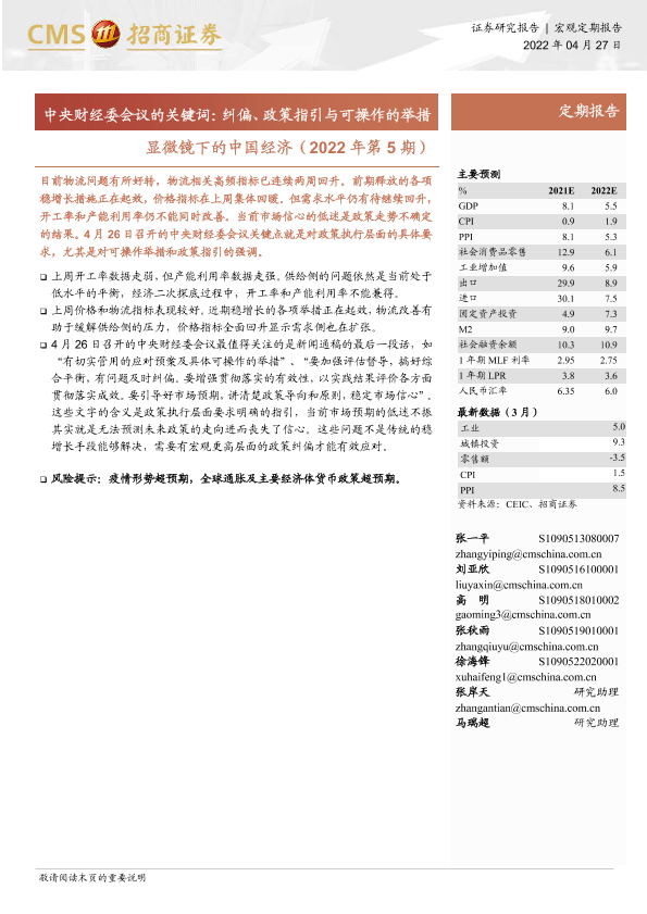 【海通证券】【20220427】显微镜下的中国经济(2022年第5期):中央财经委会议的关键词,纠偏、政策指引与可操作的举措-25页