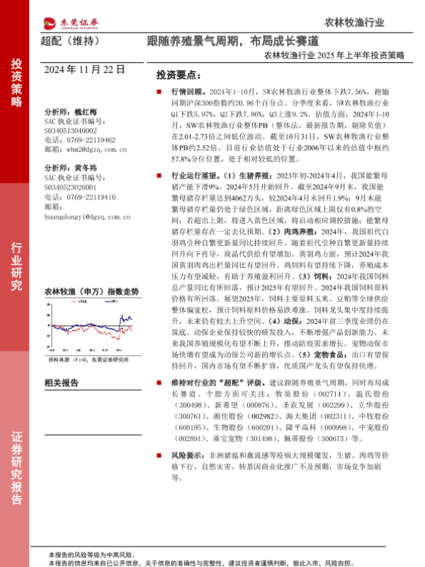 【东莞证券】【20241123】农林牧渔行业2025年上半年投资策略:跟随养殖景气周期,布局成长赛道-26页