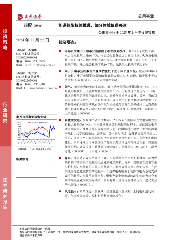 【东莞证券】【20241123】公用事业行业2025年上半年投资策略:能源转型持续推进,细分领域值得关注-21页