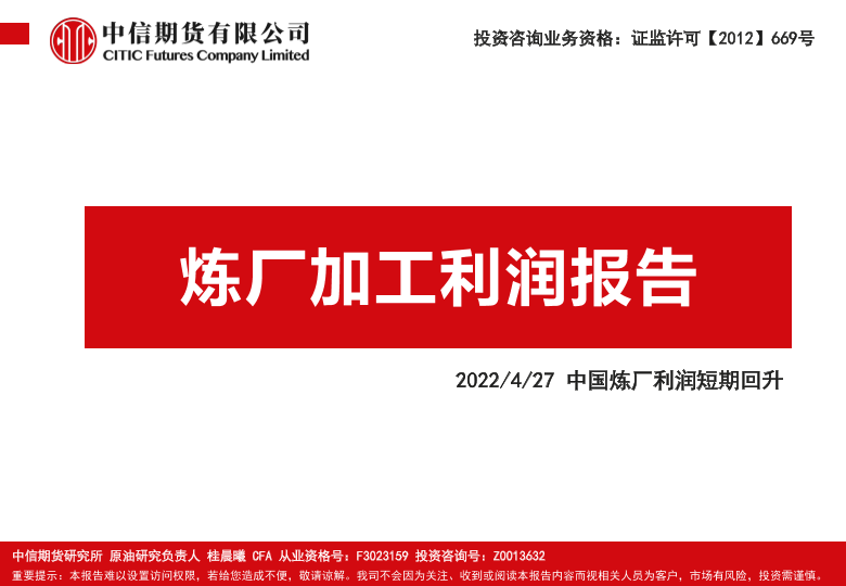 【中信期货】【20220427】炼厂加工利润报告:中国炼厂利润短期回升-16页