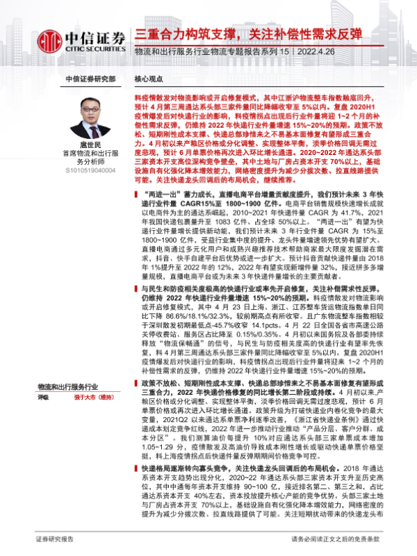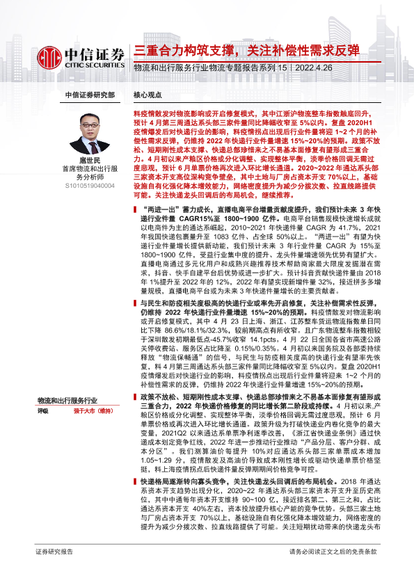 【中信证券】【20220426】物流和出行服务行业物流专题报告系列15:三重合力构筑支撑,关注补偿性需求反弹-28页