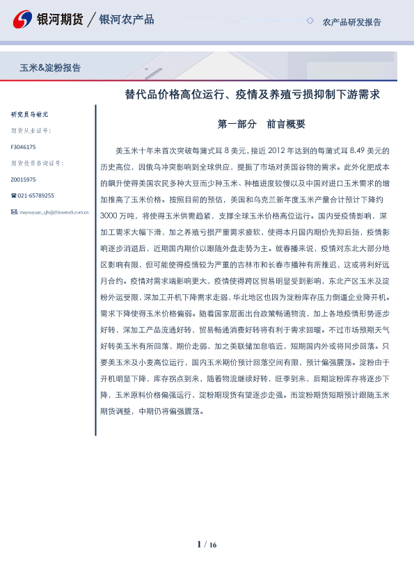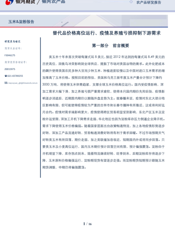 【银河期货】【20220425】玉米&淀粉报告:替代品价格高位运行、疫情及养殖亏损抑制下游需求-16页