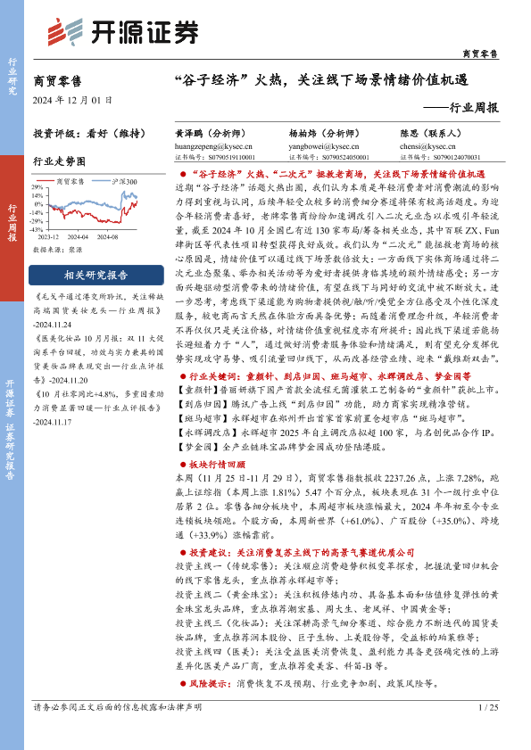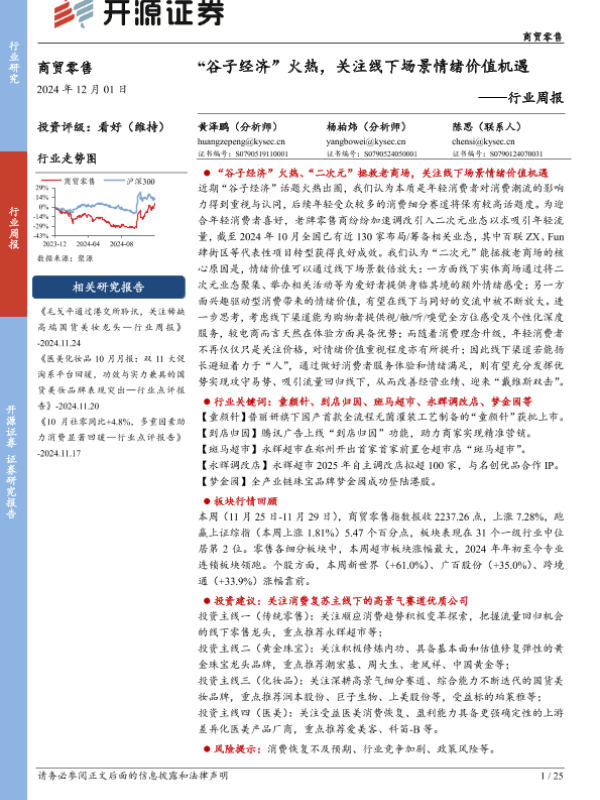 【开源证券】【20241201】“谷子经济”火热,关注线下场景情绪价值机遇-25页