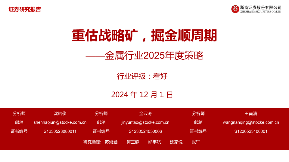 【浙商证券】【20241201】2024-12-01-浙商证券-金属行业2025年度策略:重估战略矿,掘金顺周期-62页