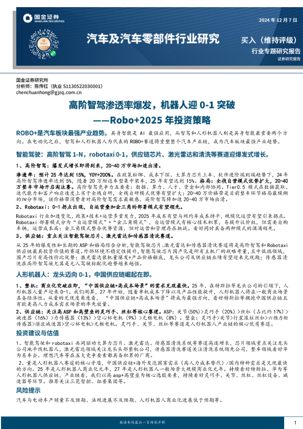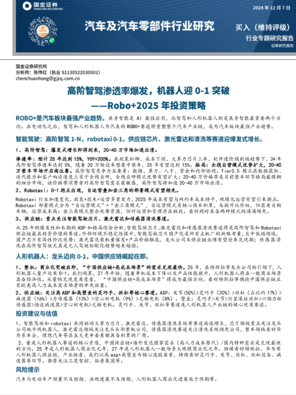 【国金证券】【20241208】汽车及汽车零部件行业Robo+2025年投资策略:高阶智驾渗透率爆发,机器人迎0-1突破-32页