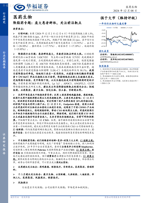 【华福证券】【20241208】医药生物行业降脂药专题:庞大患者群体,关注前沿靶点-20页