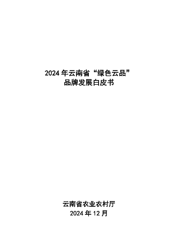 【云南省农业农村厅】【202412】2024年云南省“绿色云品”品牌发展白皮书-87页