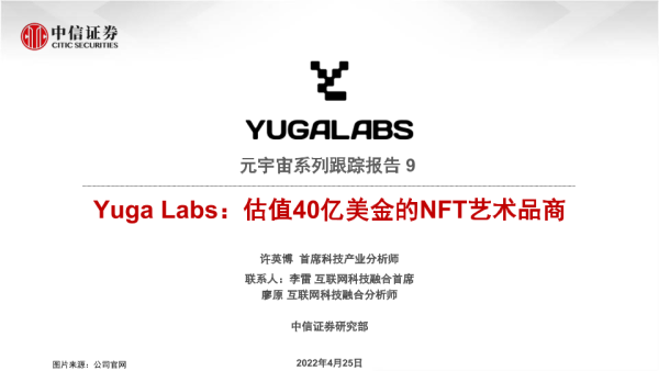 【中信证券】【20220425】科技行业元宇宙系列跟踪报告9:Yuga Labs,估值40亿美金的NFT艺术品商-19页