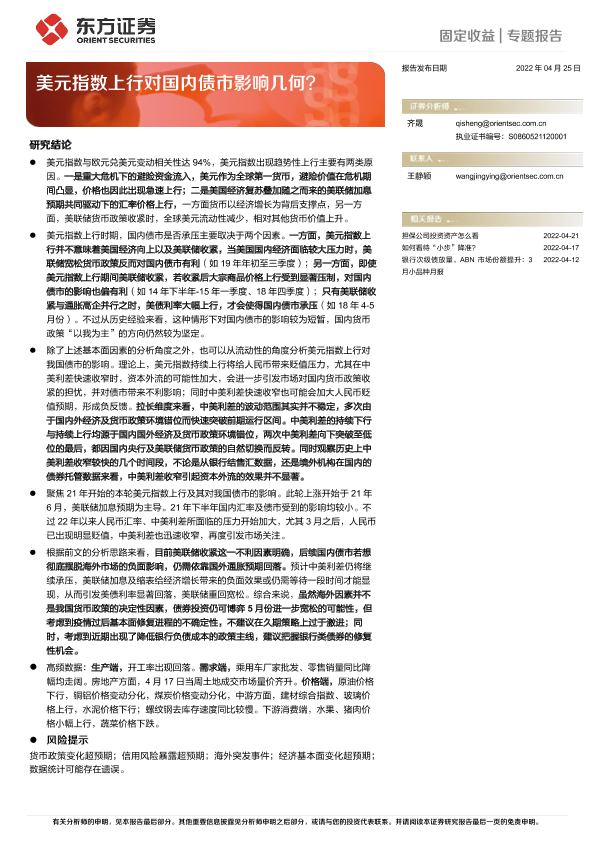 【东方证券】【20220425】美元指数上行对国内债市影响几何?-22页
