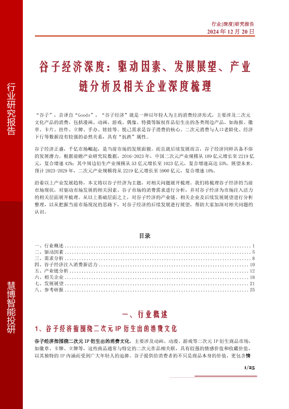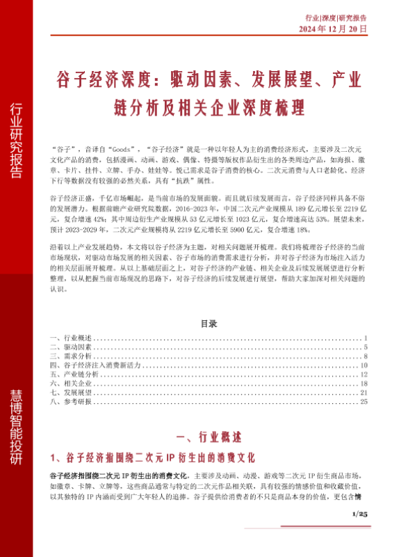 二次元文化 产业链分析 企业发展 消费市场 谷子经济