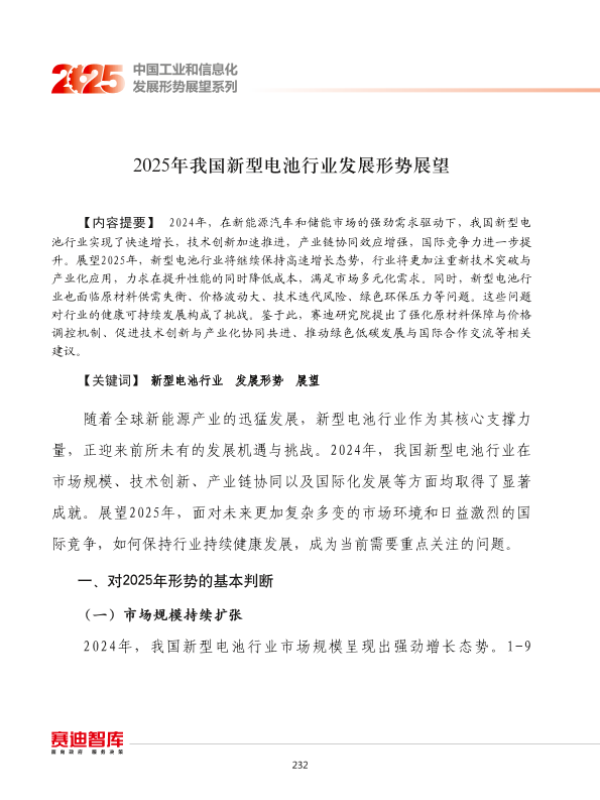【赛迪研究院】【20241228】2025年我国新型电池行业发展形势展望报告-10页
