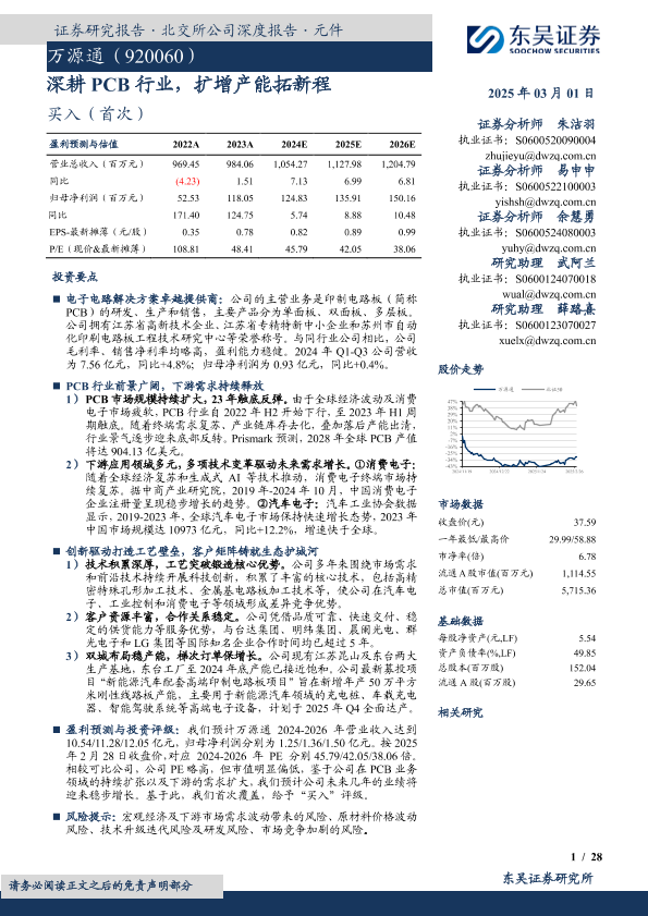 PCB行业 万源通 产能扩张 印制电路板 技术创新