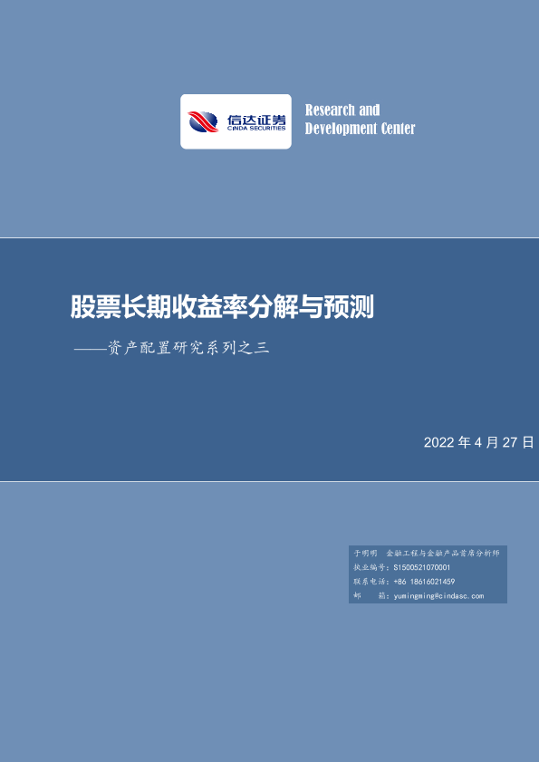 【信达证券】【20220427】资产配置研究系列之三:股票长期收益率分解与预测-27页