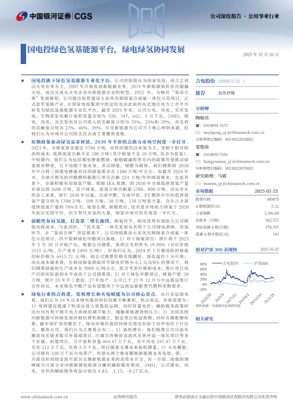 吉电股份 国电投 新能源转型 电力行业 绿色氢能