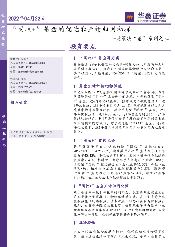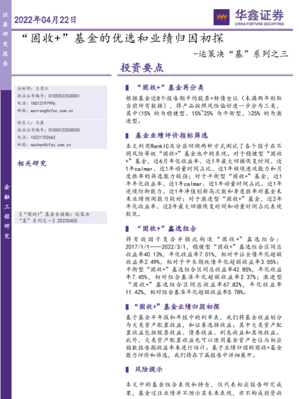 【华鑫证券】【20220422】运策决“基”系列之三:“固收+”基金的优选和业绩归因初探-22页