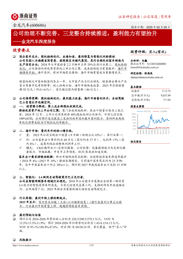 【浙商证券】【20250305】金龙汽车深度报告:公司治理不断完善、三龙整合持续推进,盈利能力有望抬升-25页