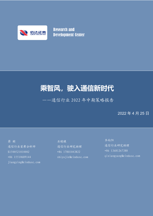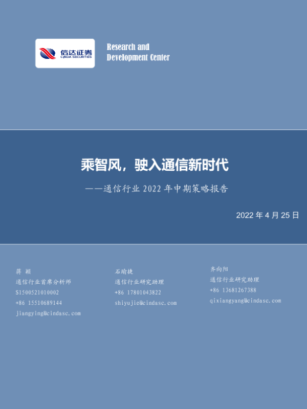【信达证券】【20220425】通信行业2022年中期策略报告:乘智风,驶入通信新时代-64页