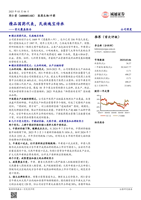 【诚通证券】【20250306】20250306-诚通证券-同仁堂-600085.SH-首次覆盖报告:精品国药代表,民族瑰宝传承-28页