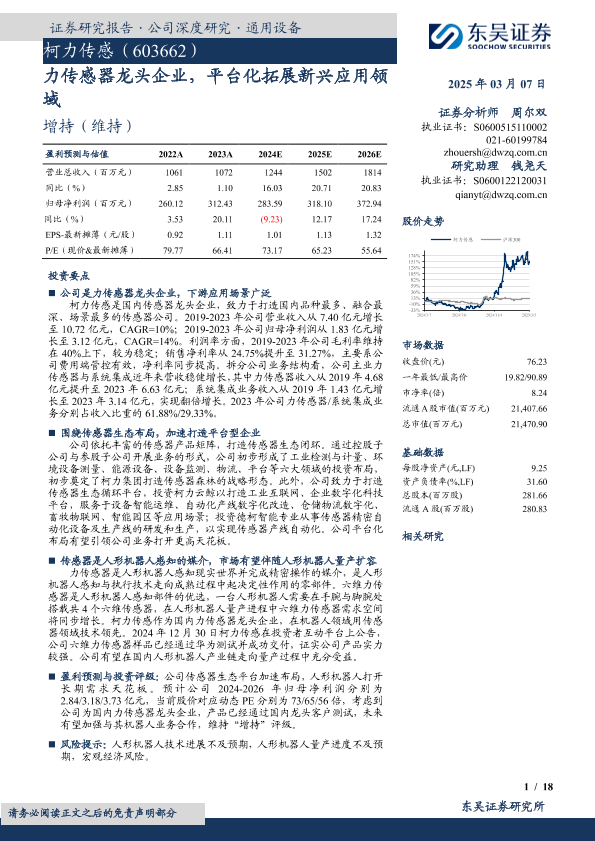 【东吴证券】【20250307】东吴证券-柯力传感-603662.SH-力传感器龙头企业,平台化拓展新兴应用领域-18页