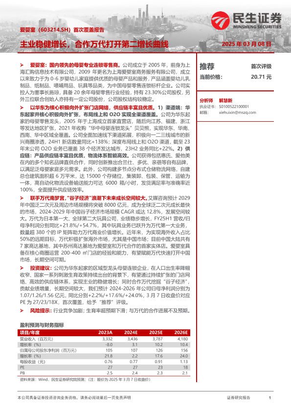 【民生证券】【20250308】爱婴室-603214.SH-首次覆盖报告:主业稳健增长,合作万代打开第二增长曲线-27页